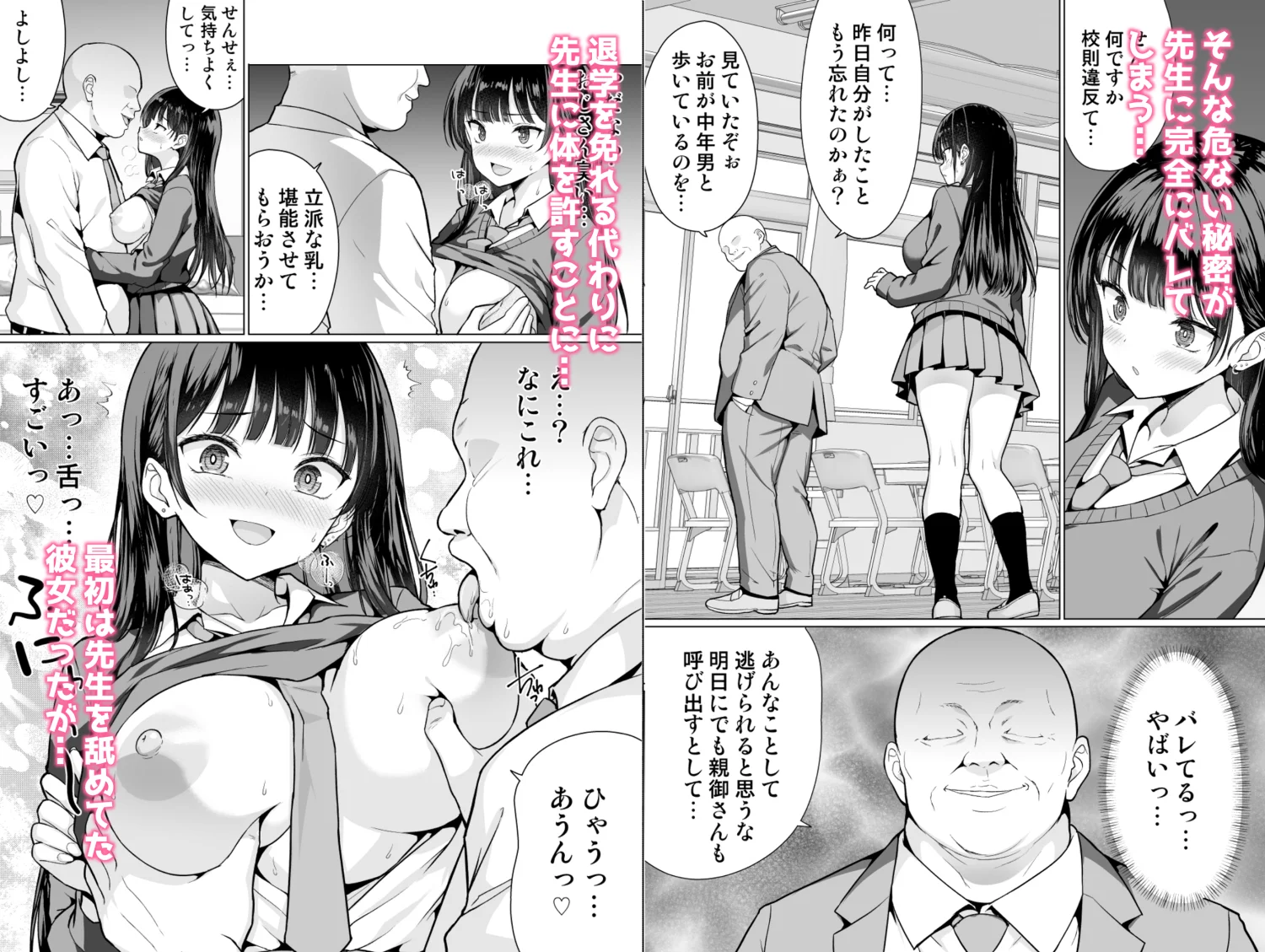 脅迫、弱み握り、快楽堕ち、中出し、アナル、処女、パパ活、制服、巨根、援交